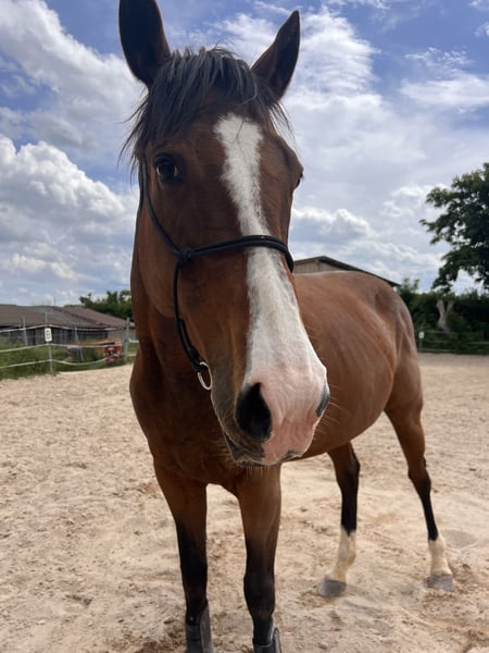 Wenn alles passt würde ich meine 12 jährige Vollblutstute verkaufen, als bedingt reitbaren Beisteller. Entwurmt und Geimpft Befund: Kissing Spines Farbe: Bay Sie ist eine charakterstarke Stute die aber zugleich sensible ist, dadurch braucht sie eine konsequente aber nicht zu harte Hand. bei der täglichen Arbeit vom Sattel oder vom Boden aus. Ich gebe sie nur in erfahrene Händen ab, da sie im Umgang manchmal nicht einfach ist und eine Bezugsperson braucht (testet viel). Sie ist nicht für Anfänger oder Kindern geeignet. Sie ist Herden verträglich steht im Offenstall in einer gemischten Herde, und ist Rangmittel. Boxenhaltung mag sie nicht vorallem wenn sie alleine ist. Durch meine aktuelle berufliche Situation kann ich ihr auf Dauer nicht gerecht werden, vorallem weil sie ein Pferd ist was viel Abwechslung und Programm braucht. Sie hat an den Fesselträgern leichte Mauke die aber bei einer normalen Wund und Heilsalbe gut in den Griff zu kriegen ist des Weiteren wurde im Januar 2026 bei ihr Kissing Spines diagnostiziert was aber bei gut trainierter Rückenmuskulatur eventuell wieder voll Reitbar sein könnte. Sie steht in 91611 Bei Interesse einfach melden.