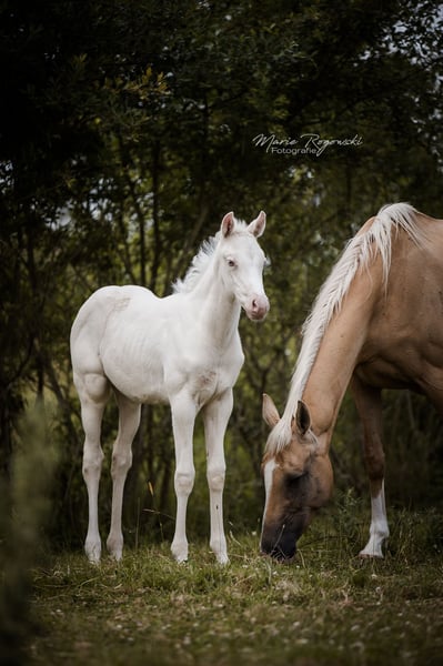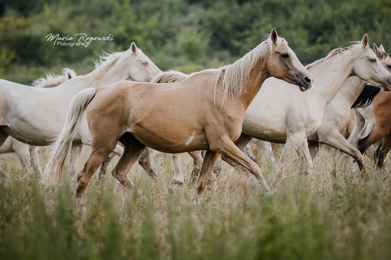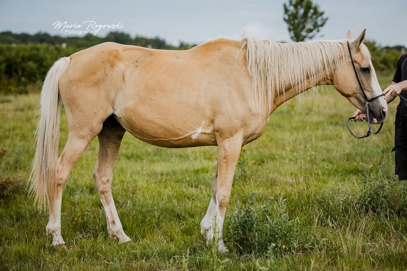 Klacz pełnej krwi angielskiej DANCE IN GOLD xx po RFF THE ALCHEMIST xx x Racey Remarque xx (USA) z własnej hodowli, pojedynczo rozjaśniona (palomino) ze specjalnymi oznaczeniami (DW). Ojciec był pierwszym (podwójnie) rozjaśnionym importowanym ogierem pełnej krwi z uznaniem Trakehnera w Niemczech. Niemieckie i francuskie papiery. Miała cztery bardzo dobre źrebaki, ostatnio klaczkę pełnej krwi Cremello w 2022 roku. Żyje 24/7/365 na zewnątrz solidnie w stadzie na rozległych terenach, przyzwyczajona również do transportu długodystansowego. Barehoofed, odrobaczony, zaszczepiony - odnowiony na życzenie - możliwe jest również leczenie stomatologiczne i osteopatia. Może być pokryty wiosną na życzenie, wybór 10 własnych ogierów pełnej krwi, ciepłokrwistych i półkrwi arabskiej, miejsce do wyżywienia bardzo korzystne. Sprzedaż tylko z powodu likwidacji stada. Klacz jest doskonałym zwierzęciem. Sprzedaż prywatna po zapoznaniu się, zakwaterowanie zostanie zapewnione bezpłatnie. Cena ... symboliczne jedno euro NIE jest ceną sprzedaży. Cena sprzedaży zależy od kupującego i innych ustaleń umownych. Tutaj kupujący może zdobyć punkty na swoją (lub ostatecznie konia) korzyść poprzez dobrą hodowlę i / lub miejsce do życia (bez przekazywania). Wszystkie zwierzęta są dostępne tylko na osobistej prezentacji.