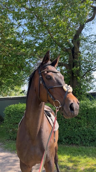 ON BEHALF❗️ Donna Philippa is a dark brown Thoroughbred mare born on February 16, 2010, from German breeding and approximately 1.63 m tall. She is sired by Sternkönig (IRE) (father) and Dushinka (IRE) (mother). Her damsire is Titus Livius (FR). She has lovingly brought three foals into the world, one of which also successfully raced in 2022. (“Don Chi” (GER) as a foal in the last two pictures) We took over Donna Philippa in May 2025 from poor conditions and have rebuilt her with a lot of love and time. After her rehabilitation, she was gently re-trained and is now looking for a loving, permanent home as a leisure horse. Under saddle, she is well-behaved in all three basic gaits (walk, trot, canter). She is responsive to aids, very willing to learn, and pleasant to ride. Occasionally, she may react a bit spookily, but she calms down well and remains manageable. She has a sweet, friendly temperament and is perfect for a sensitive leisure rider who enjoys a well-trained, responsive horse. Since Donna has been in our possession, she has been kept in an active stable, amidst a large herd of mares. We would wish for her to continue being kept in an open stable. If you are interested or have further questions, please contact us via message or by phone at 01701715950. Viewing and trial rides are possible by arrangement. Location: Germany