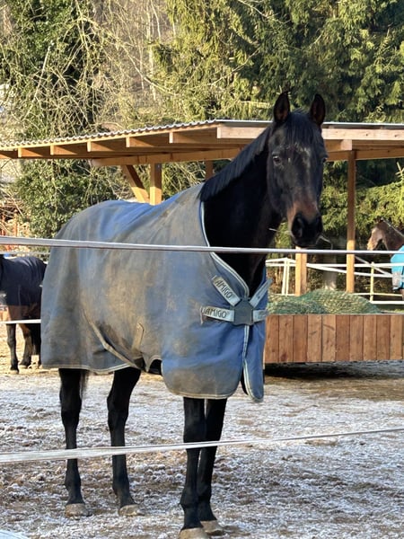 Donnatella is a 16-year-old dark bay mare. She is approximately 16.0 hands tall (I would need to verify the exact measurement). She is very affectionate and loves to be groomed for hours, enjoying all the attention and pampering. She has been ridden in all three gaits and is familiar with lunging, double lunging, and groundwork. She is very sensitive and intelligent. She listens carefully to her handler and requires a good level of trust. She has already foaled six foals and has accepted each one without any issues. Videos available.