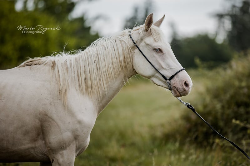 Stute | Englisches Vollblut | Cremello | geb. 2022 | 157 cm DANCE IN CREAM xx ist eine harmonische, sozial und neugierig aufgeweckte Vollblutstute mit klarer Erscheinung und gut proportioniertem Körperbau. Sie überzeugt durch ausgeglichenes Wesen im Umgang. Ihr Vater TCF Palladium xx gilt als weltweit erster Smoky-Cream-Vollblüter und wird für korrektes Fundament, harmonisches Exterieur und zuverlässigen Charakter geschätzt. Ihre Mutter Dance in Gold xx ist eine robuste, erfahrene Vollblutstute, die ihre Gesundheit, Gelassenheit und Sozialkompetenz in die Nachzucht weitergibt.