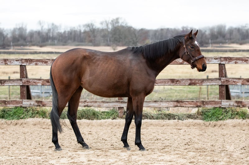 Schweren Herzens verkaufen wir hier unsere fast 4-jährige, selbstgezogene Vollblutstute. Dandelion ist am 07.04.2022 auf dem Gestüt Erftmühle geboren und aufgewachsen. Sie befand sich bis vor kurzem im Renntraining, hat aber aus persönlichen Gründen den Rennstall rundum gesund und unverletzt verlassen. Dies kann natürlich gerne im Rahmen einer Ankaufsuntersuchung überprüft werden. Sie ist keine Rennen gelaufen. Wir möchten sie nun am liebsten in den Freizeitbereich, gerne aber auch an einen ambitionierteren Reiter verkaufen. Ich könnte sie mir gut in der Vielseitigkeit oder der Distanz vorstellen. Ihre Mutter, Dolasilla, geht mit ihrer 15-jährigen Reitbeteiligung regelmäßig auf Geländekurse und zeigt sich dabei unglaublich talentiert, sie ist wendig und schnell und hat eine tolle Manier am Sprung (siehe die beiden letzten Bilder). Dies hat sie sicherlich an ihre Tochter vererbt. Dandelion ist vollbluttypisch voller Energie und möchte gerne arbeiten, hat mit ihren fast 4 Jahren aber natürlich noch nicht viel gesehen. Wir üben gerade ruhig am Anbinder zu stehen, alleine spazieren zu gehen und erste Grundlagen der Bodenarbeit am Kappzaum. Dort zeigt sie sich sehr intelligent und hat schon eigene, sehr gute Ideen. Neue Situationen findet sie oft noch aufregend, wird dabei aber niemals kopf- oder respektlos. Zudem zeigt sie keinerlei Unarten. Im Grunde ist sie ein ganz normales, junges Pferd, welches noch sehr viel lernen muss und möchte. Außerdem ist sie unglaublich verschmust, wird gerne am ganzen Körper gekrault und kommt sofort angelaufen, wenn man sie ruft. Ich bin mir sicher, dass sie ihren zukünftigen Menschen sehr glücklich machen wird und viel Potential für sämtliche Sparten des Reitsports hat. Dandelion ist nun ca. 1,63m groß und wird sicherlich noch ein ganzes Stück wachsen.