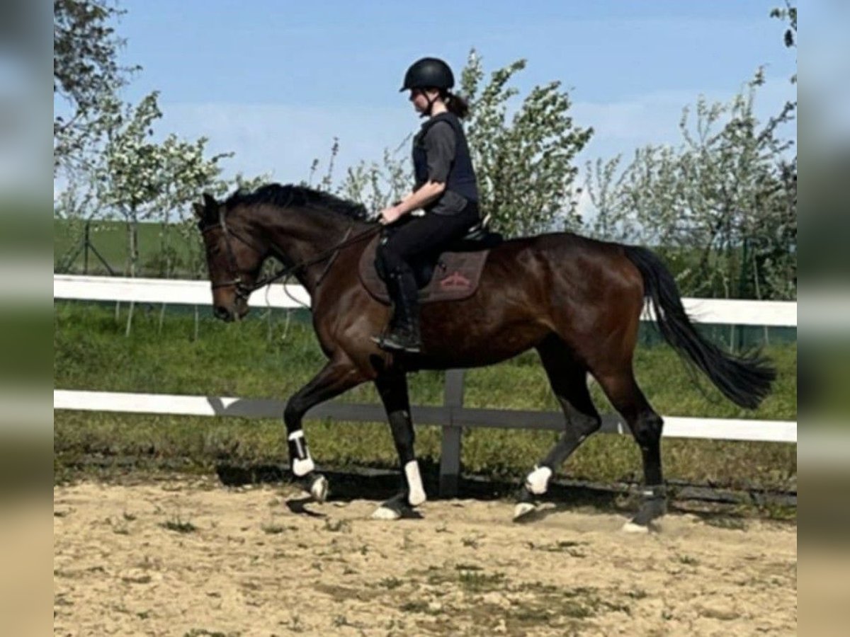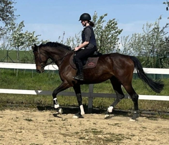 Nemesia – English Thoroughbred mare with riding horse training For sale is Nemesia, a 5-year-old English Thoroughbred mare. Although she comes from a racing background, she has never competed in a race. She has already been carefully retrained as a riding horse and is now looking for a loving home as a leisure or riding horse. Nemesia impresses with her refined rideability. She is steady on the bit, accustomed to gentle aids, and has experience with small jumps. She consistently shows cooperation and attentiveness. She has no vices and is pleasant and straightforward in daily handling. Additionally, she is shod and loading-friendly, regularly vaccinated and dewormed, and free of health issues. She is used to turnout in a herd. Nemesia is an eager, talented mare with great potential for leisure riding, dressage work, or further development in sport. She is seeking a sensitive owner who appreciates her qualities and will continue to support her growth.