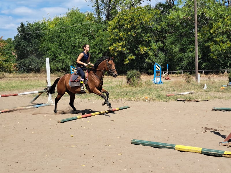 For sale 5 years old filly. She has a very good character, easy for the riding. At home she jump 1 m, never not stop, like it. If interesting, I can sent videos.
