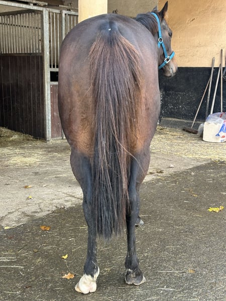 2020 Irish Thoroughbred, „Anarchia“ Größe ca. 151 cm Hufe vorne beschlagen Gutes Verhalten beim Hufschmied Zähne zuletzt im Dezember kontrolliert Keine Macken Sie steht nachts in der Box und wird tagsüber auf der Weide gehalten. Geht gut mit Wallachen und Stuten, befindet sich in der Hierarchie unten. Kennt Hunde, Kinder und Traktoren. Letztes Rennen am 2. Oktober 2025. Hat den Winter entspannt verbracht und sich an den Alltag gewöhnt. Reitbar, bevorzugt es, nicht in einer Gruppe von vielen Reitern gleichzeitig zu sein. Arbeitet am liebsten allein. Kennt das Reiten sowie Longieren, sowohl in der Halle als auch auf dem Feld. Wunderbares Wesen. Nicht übermäßig anhänglich, aber unglaublich klug, neugierig und mutig. Spookt kaum und lässt sich leicht wieder auf dich zurückholen, wenn sie sich sorgt. Sie liebt es, zu arbeiten und ihren Geist zu beschäftigen. Hat schöne Gänge. Für die volle Entwicklung benötigt sie noch Zeit und Training, daher nicht für Anfänger oder Kinder geeignet. Derzeit kann sie aufgrund der Gesundheit des Besitzers keine Fortschritte machen. Kommt mit Winterdecken. Preis: 5500 € Standort: 66909 Quirnbach Kontakt per WhatsApp: +1 7174240460 -- nur Text