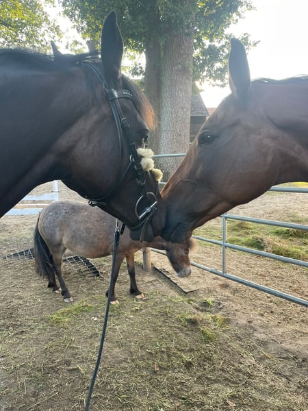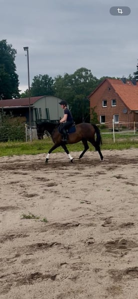 Wir suchen schnellstmöglich ein neues Zuhause für meine dunkelbraune 6 jährige englische Vollblutstute. Bislang waren leider nicht die richtigen Menschen für sie dabei. Sie ist ca 1.59m. Ich habe sie im August 2023 aus dem Rennstall als Nachwuchspferd für die VS gekauft. Die Stute lief erfolgreich auf der Rennbahn vor dem Kauf. Sie hat eine große AKU vom Kauf inklusive Röntgenbildern vom Rücken. Da wir nach dem Kauf bei einem Routinetermin in der Zahnklinik einen Blinden Wolfszahn fanden musste dieser per OP entfernt werden(verankert mit dem Unterkiefer daher musste gefräst werden). Die Stute bekam daraufhin 1,5 Jahre Pause. Die Stute ist in den Folgeterminen in der Klinik als komplett gesund entlassen worden. Aufgrund beruflicher Veränderungen konnte die Stute nur ca 2,5 Monate diesen Sommer in die Arbeit genommen werden. Seit Ende August ist sie aufgrund meiner beruflichen Abwesenheit nicht mehr im Training. Es handelt sich um ein Jungpferd welches weiter schonend ausgebildet werden muss. Die Stute hat sehr gute Grundgangarten und zeigte sich bei mir immer gut unter dem Sattel. Sie ist mit dem nötigen GO ausgestattet. Jungpferdeerfahrung sollte vorhanden sein, weil sie mit einer harten oder unruhigen Hand nicht zurecht kommt. Sie war bereits ein paar mal alleine im Gelände unterwegs. Sie lässt sich brav longieren und kennt auch Stangen und kleine Sprünge. Sie kennte bereits auswärts Trainings und zeigte sich dort immer brav und nervenstark! Sie steht aber noch am Anfang ihrer Ausbildung zum Reitpferd. Sie ist selbstverständlich Schmiede und Verladefromm! Verladen auch alleine möglich. Sie läuft bei uns Barhuf. Impfung aus Juli (Turnierintervall) Zahnarzt August Wurmkur August Wir suchen ein schönes Zuhause in dem die Stute gefördert wird. Sie möchte arbeiten und nicht weiter nur da sein. Dies kann ich ihr leider nicht mehr bieten. Bei Fragen bezüglich der Abgabe oder sonstigen Interessen gerne melden. Ein kleines Vorreiten um sich einen Eindruck der Stute zu machen ist am Wochenende möglich. Man sollt jedoch bedenken dass es sich um ein Jungpferd welches nicht im Training ist handelt. Aufgrund meiner Abwesenheit sind Termine leider nur am Wochenende möglich.