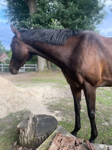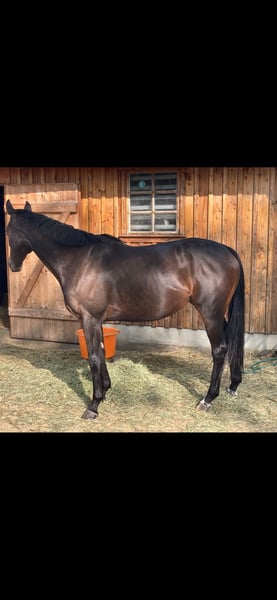 We are urgently looking for a new home for my dark brown 6-year-old Thoroughbred mare. Unfortunately, the right people have not come along for her yet. She stands at approximately 1.59m. I purchased her in August 2023 from a racing stable as a prospect for eventing. The mare had a successful racing career prior to the purchase. She has a comprehensive veterinary check from the purchase, including X-rays of her back. After the purchase, a routine appointment at the dental clinic revealed a blind wolf tooth, which had to be surgically removed (anchored to the lower jaw, so it needed to be drilled). As a result, the mare had a 1.5-year break. In subsequent appointments at the clinic, she was declared completely healthy. Due to professional changes, the mare could only be worked for about 2.5 months this summer. Since the end of August, she has not been in training due to my professional absence. She is a young horse that needs to be trained gently. The mare has very good basic gaits and has always shown well under saddle with me. She has the necessary go. Experience with young horses is essential, as she does not respond well to a heavy or unsteady hand. She has been out on the trails alone a few times. She is easy to lunge and is familiar with poles and small jumps. She has also participated in off-site training sessions and has always behaved well and shown great composure! She is, of course, well-behaved for the farrier and loading! She can also load by herself. She is currently barefoot with us. Vaccination from July (tournament interval), dentist in August, deworming in August. We are looking for a nice home where the mare will be supported. She wants to work and not just be there. Unfortunately, I can no longer provide that for her. If you have any questions regarding the sale or other interests, please feel free to reach out. A small trial ride to get an impression of the mare is possible on the weekend. However, please keep in mind that this is a young horse that is not currently in training. Due to my absence, appointments are unfortunately only possible on weekends.