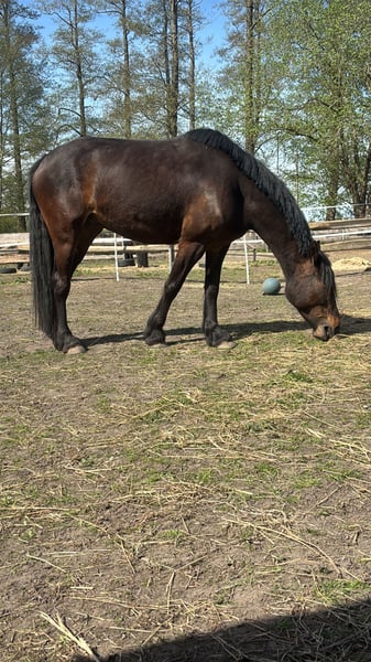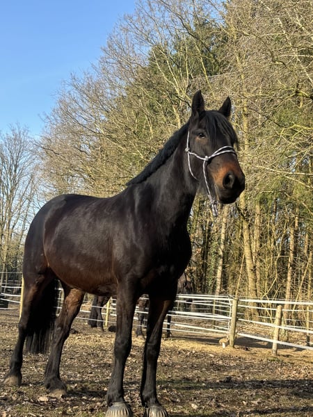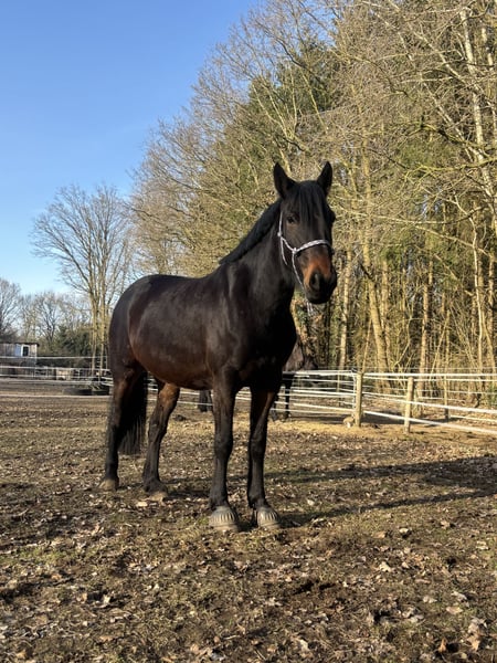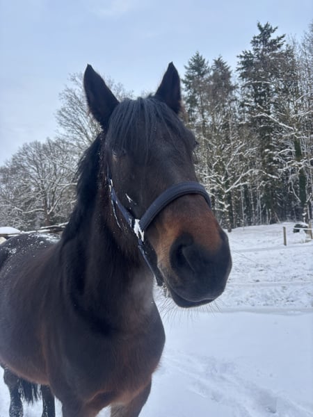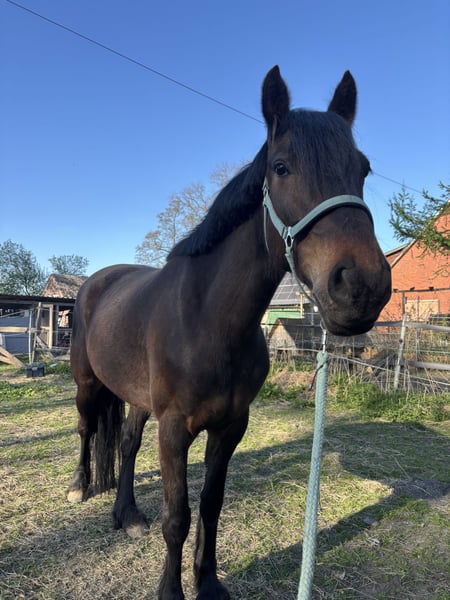 Unfortunately, my mare Stella is looking for a new owner. I’ve realized that despite my best efforts, we are not truly compatible, and our relationship tends to be more confrontational than harmonious. She is a Thoroughbred cross, 6 years old (born in 2020), standing approximately 1.60 meters at the withers. For the past year, I have only worked with her on the ground. She is very motivated in these exercises and responds well to body language and voice commands. However, she clearly shows signs of stress if she feels overwhelmed. She is already backed, but anyone wanting to ride her should proceed gradually and patiently. I also want to mention that Stella is not suitable for long-term or competitive riding due to soft tendons and is not a weight-bearing horse. She has no issues with saddles or tack. At the grooming area, she is very relaxed and thoroughly enjoys being groomed. She is shod (front shoes), but needs a gentle push when loading onto a trailer or horsebox. In the terrain, she needs targeted training again, as she tends to become easily nervous. She requires someone she trusts deeply, and I sense that this trust is currently lacking between us. She can only be kept in a suitable open stable with a herd, preferably mixed. I am looking for a sensitive person for this mare—someone who can read her well, support her development, and ensure she is happy. Additional equipment can be purchased if needed.