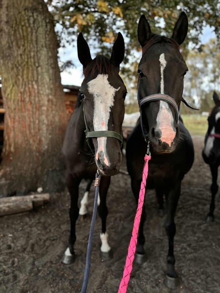 Ungezügelte Stute. Sie zeigt sich brav, wurde bereits angebunden und geht an der Führleine. In der Pferdeanhänger wurde sie bisher nicht transportiert. Gaba ist ein ruhiges und ausgeglichenes Pferd, das auf der Weide in einer großen Herde aufgewachsen ist. Sie ist im Umgang mit anderen Pferden unkompliziert. Eine gute Mutter. Sie wurde vermessen: 148,5 cm. Der Verkauf ist auch inklusive ihres Fohlens aus 2025 möglich. Stute geboren im April 2025. Großer Ponyrasse, angestrebte Endgröße ca. 146/8 cm. Die Mutter ist eine Vollblutstute englischer Abstammung, Tochter des Hengstes Nowogródek, von der Mutterlinie her nach Jape. Der Vater ist Crème Couleur – Nachkomme eines Europameister-Medaillengewinners. Das Fohlen wurde auf der Weide großgezogen. Gut gebaut, bewegungsstark und korrekt im Körperbau.
