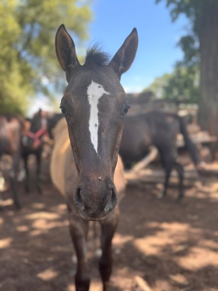 Klacz jest niezajeżdżona. Podaje nogi, była wiązana i chodzi na uwiązie. Nie jeździła w przyczepie. Gaba to koń spokojny i zrównoważony, wychowywana na pastwisku w dużym stadzie. Jest bezproblemowa w stosunku do innych koni. Dobra matka. Była mierzona - 148,5 cm Możliwa sprzedaż z jej źrebakiem z 2025. Klaczka urodzona kwiecień 2025 Duży kuc, wzrost docelowy 146/8 cm Matka pełnej krwii angielskiej to córka ogiera Nowogródek, od matki po Jape. Ojcem jest Crème Couleur - potomek medalisty Mistrzostw Europy. Klaczka wychowana na wolnym wybiegu. Poprawnie zbudowana, dobrze ruszająca się.