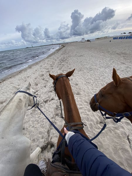 Zum Verkauf steht meine 8-jährige Stute Colliene, die als zuverlässiges Freizeit Pferd viel Freude bereitet. Colliene ist ein sehr liebes, verschmustes und absolut unerschrockenes Pferd, mit dem man jederzeit entspannt ausreiten kann – ob im Gelände, am Strand oder auch im Wasser. Sie besitzt einen sehr gut sitzbaren Galopp, schöne Gänge und macht einfach Spaß beim Reiten. Neben den Ausritten wurde Colliene auch vielseitig gearbeitet: Ich selbst spiele Polo, daher ist sie auch als Polopferd geritten. Ursprünglich kommt sie von der Rennbahn, zeigt sich aber in allen Situationen brav und ausgeglichen. Zusätzlich wurde sie regelmäßig longiert und auch im englischen Reitstil mit zwei Zügeln gearbeitet. Ein besonderes Erlebnis war ein Ostsee-Urlaub, bei dem ich mit ihr bereits im Alter von 6 Jahren am Strand und sogar im Meer reiten war – auch dort blieb sie völlig entspannt und gelassen. Optisch überzeugt sie mit glänzendem Fell und Schweif. Bei Interesse oder für weitere Fragen melden Sie sich gerne unter (+4915252865085 oder über die App) Ich freue mich auf Ihre Nachricht 😊