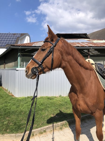 Zum Verkauf steht Pearl of Power, eine 8-jährige Fuchsstute mit einem Stockmaß von ca. 165 cm, abstammend aus einer Vollblutzucht. Die Stute wurde bisher freizeitmäßig bewegt und befindet sich seit diesem Jahr in weiterer Ausbildung. Sie kennt die Arbeit auf dem Platz und in der Halle. Im Gelände ist sie wenig erfahren. Charakterlich überzeugt sie durch ihr feinfühliges, fleißiges und ehrgeiziges Wesen. Aufgrund ihres Temperaments und ihres Ausbildungsstandes würde ich mir einen erfahrenen Reiter wünschen, der sie weiter fördert und fordert. Es sind keine Krankheiten oder Befunde bekannt. Die Stute eignet sich für ambitionierte Freizeitreiter oder Reiter, die sich ein Pferd mit Entwicklungspotential wünschen. Bei Interesse freue ich mich über eine Nachricht.