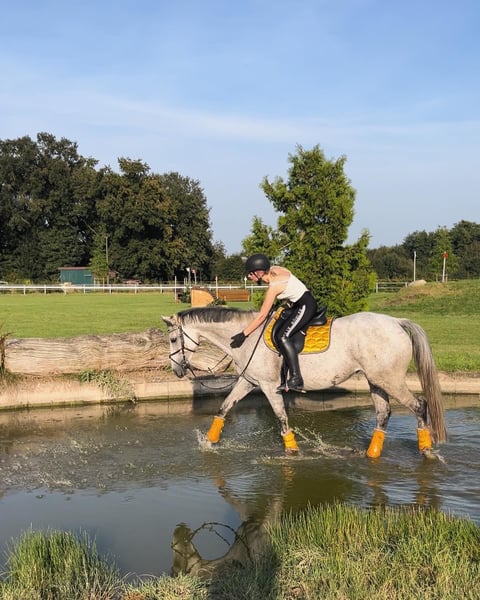 Met pijn in het hart bied ik hier mijn 9-jarige Vollbloed merrie Monta Rare te koop aan. We komen rijdend helaas al vier jaar niet tot een overeenstemming. Monta is een Engels Vollbloed, geboren in april 2017, en is 1,69 m groot. Ze is van nature een nerveus type paard. Daarom heeft ze een ruiter nodig met veel gevoel, maar ook met stevige leiding en consequentie. In het terrein is ze voor elk plezier te hebben. Of ze nu alleen of in een groep rijdt, maar dan graag behoorlijk vooraan. Ze kent de binnen- en buitenbak, maar heeft de voorkeur voor buiten. Springen is haar ding, al is dat niet echt verder ontwikkeld. Ik zie haar ook heel goed in de veelzijdigheid, omdat ze bij dergelijke sprongen erg onbevreesd is. Over het algemeen heeft ze door haar opleiding als racepaard enkele ‘eigenaardigheden’. Ze heeft bijvoorbeeld soms wat teveel been en wil snel vooruit, maar dat is niets wat je niet met haar kunt oefenen. Ze werkt heel graag en leert snel. Geen doorrijden of andere problemen, altijd goed handelbaar. Momenteel staat ze in box, met dagelijks buiten op de wei of paddock in de kudde. • Mei 2025: hoefbevangenheid door verkeerde hoefverzorging, sindsdien met voorijzers • April 2025: bloedtest, seleniumtekort, dat sindsdien wordt aangevuld • Hoefsmeden en dierenarts zijn geen probleem • Laden in de trailer vindt ze niet prettig, maar tijdens het rijden blijft ze heel rustig Te koop inclusief springzadel en bit. (Tegen meerprijs kan ook al haar toebehoren worden meegeleverd, van dekens en zadeldekken tot hoefglocken en peesbeschermers, ze bezit bijna alles ;) ) Om proefritten te voorkomen, reken ik €20 voor een proefrit, deze wordt verrekend bij aankoop. Bij serieuze interesse is meerdere keren proefrijden mogelijk en kosteloos, na afspraak. Plaats gaat voor prijs. Het is mij vooral belangrijk dat ze in goede handen komt.