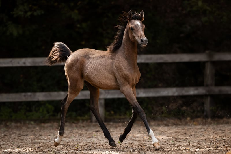 BH Macan by A Magic Man of Kossack is a Russian-bred purebred Arabian stallion, awarded the foal premium by the VZAP in 2025. He impressed our team during a visit to our farm with his presence and charm. Macan is a colt with a strong presence and excellent posture; he loves to showcase himself. He stands out for his solid conformation and lively, expressive, and very rhythmic movements. It is already evident that Macan will be a versatile partner under saddle, excelling both in character and quality. He will be a grey, currently sporting a fine brown-silver coat. Macan is friendly, highly trainable, and easy to handle. The young purebred Arabian stallion is halter-trained, accustomed to being tied, comfortable being touched all over, and easily gives his hooves. He is very patient during farrier work. Regular deworming is also part of his routine. He spent his first summer with other foals, three yearling mares, and our broodmares on the pastures at Borner Hof. Wind, rain, sunshine – nothing fazes him. He is familiar with children, vehicles, trucks, tractors, dogs, deer, and many other stimuli, and remains unfazed. Macan is growing up robustly on the Borner Hof, surrounded by family. BH Macan is ready to find a new home and bring joy to his future owner. He could also stay with us at Borner Hof for further training and development until October 2027. If BH Macan has piqued your interest and you would like to meet him in person, we look forward to receiving your message to arrange a viewing. https://bornerhof.de/2025/bh-macan-vollblutaraber/