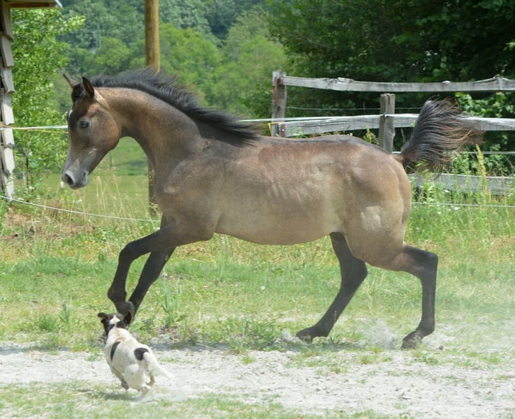 Solkan is a wonderful, nearly two-year-old purebred Polish stallion with great potential. He has a very strong and compact build, excellent conformation and hooves, and moves beautifully. His temperament is very human-oriented and curious. He comes from a highly successful mare line in Gallop, making him an ideal candidate for a future sports career. He would also be very suitable as a new family member for someone looking for a versatile Arabian horse. With his conformation and pedigree, he is also suitable as a breeding stallion. He can be castrated upon request. More information about him can be found on our website: https://vineyard-arabians.com/index2.php?option=pedigree&lang=en&id=71&up=for_sale