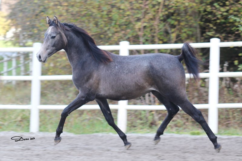 Histrion Qahira impresses with his type and correctness, and he comes from the best pure Spanish bloodlines. Thus, such recommends our youngster not only as a stallion candidate but also as a riding horse for all disciplines. His dam Ultramar Qahira has already produced excellent offspring, her eldest son is predicted to have a great sporting career by several trainers and judges and has confirmed this with placings in dressage A and jumping E. Our thoroughbred Arabian horses have been focused on performance for generations and have proven themselves in the classic discipline of versatility and are not just "versatile" in use!! In addition, the purely Spanish Arabian is the rarest of all thoroughbred Arabians, accounting for only 0.5% of the total population. To this end, the all-Spanish thoroughbred Arabian has always been drawn to riding characteristics, hardness, durability, bone strength and character. By buying a purely Spanish Arabian thoroughbred, you are acquiring something unique, something special!