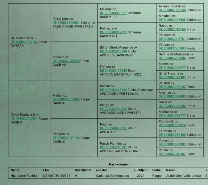 🌟 russischer Diamant sucht neue Wege 🌟 Ein Vollblutaraberhengst aus rein russischen Leistungslinien sucht aufgrund meiner bevorstehenden Auswanderung nach Spanien ein neues Zuhause. 💔 Es fällt mir unendlich schwer, denn dieser Hengst ist mehr als nur ein Pferd – er ist ein Stück Herz, ein Stück Zuchtgeschichte und ein echtes Ausnahmetier. Leider kann ich nicht alle drei Deckhengste mitnehmen, und so muss ich mich schweren Herzens von ihm trennen. 💫 Seine Abstammung & Erfolge: Aus rein russischen Leistungslinien Mutter: Patritzia S Elitestute mit über 250 Punkten Großväter: Mirok Monpelou & Gips (Elitehengst) Vater GF Maschuk leistungsgeprüft im Distanzsport Großvater Makjet: doppelt leistungsgeprüft (Rennen und Distanz) Viele Geschwister mit Leistungsplaketten & Sporterfolgen Genetik: EEAa – produziert keine Füchse Interessant für die Rappzucht Bereits 2-jährig vom VZAP mit der weißen Schleife ausgezeichnet - potential für Silber oder Gold Erste Nachzucht überzeugte bereits 🏇 Typ & Charakter: Ein echter Gentleman – klar im Kopf, freundlich, feinfühlig, leistungsbereit. Kräftiges Fundament, harmonische Bemuskelung, typvoller Ausdruck – ein Araber, wie man ihn sich wünscht: edel, sportlich, charakterstark mit dem typisch russischen Gangwerk. ✨ Er möchte arbeiten, sich beweisen, gefallen. Für’s Rumstehen ist er viel zu schade! Langweilt sich aktuell sehr. Ideal für Züchter oder ambitionierte Distanzreiter, die sein Potenzial zu schätzen wissen. ‼️ Dringend abzugeben wegen Auswanderung. Für schnellentschlossene Interessenten aktuell noch als Hengst – weit unter Wert. Eine Pacht wäre eventuell auch denkbar. 📩 Bei ernsthaftem Interesse bitte PN. Nur in beste, erfahrene Hände, die wissen, welches Juwel sie hier bekommen.