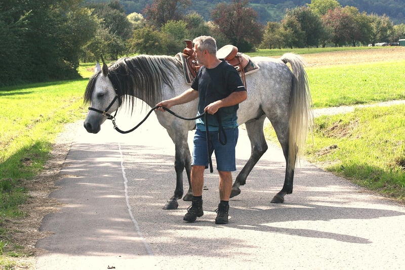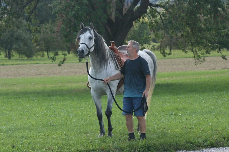 Zu verkaufen ⚜️ SA Sandro ⚜️ ein wunderschöner rein spanisch gezogener Vollblutaraberhengst, geboren im Jahr 2018. Dieser elegante Schimmel hat ein Stockmaß von 153 cm und überzeugt durch seinen anmutigen Auftritt und sein freundliches Wesen. Er stammt aus einer erstklassigen Zucht und ist beim VZAP mit der silbernen Schleife ausgezeichnet worden. Bei Interesse oder Fragen stehe ich gerne zur Verfügung unter 0175 285 1979 bin ich zu erreichen. Er kennt alleine Spazierengehen, dabei ist er mutig und läuft anständig durch Pfützen oder über Schachtdeckel durch Flatterbänder über Plastickplanen, mit ein bisschen arbeit wird aus ihm ein toller Freizeitpartner ist aber durch seine vom VZAP Verband erhaltene silberne Schleife auch für die Zucht interessant, 2 Fohlen rein spanisch gibt es bereits von ihm. Vorbeikommen, anschauen und verlieben