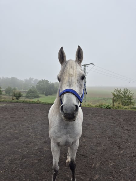 Biete hier im Auftrag den zehnjährigen Araberwallach Kallisto ox an. Kallisto ist in den letzten Jahren leider etwas zu kurz gekommen und sucht nun fördernde Hände. Er läuft super brav in allen Gangarten als Handpferd ins Gelände und war auch schon auf Handpferdedistanzritten. Er ist unkompliziert im Umgang, kennt Sattel und Trense und lässt sich brav longieren. Man kann ihn problemlos von der Herde wegholen und er ist Schmiede und Verladefromm. Etwa 1,51m. Beim Anreiten war er nicht so begeistert von der Idee. Dies lässt sich aber mit Zeit und etwas Sachverstand bestimmt lösen. Aufgrund von Auswanderung der Besitzerin können wir ihm diese Zeit nun aber nicht mehr geben. Kennt Box, Offenstall und ganztägig Wiese. War immer gesund. Bei Fragen gern unter 0174-9672715 melden. Am Besten per WhatsApp. Videos sind auch vorhanden.