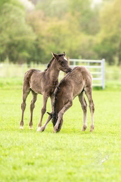 Typische en extreem correcte jonge raszuivere Arabische hengst in een zwart jasje. Kadri heeft alleen een klein vlokje op zijn voorhoofd, verder zonder aftekeningen. Hij is nieuwsgierig zonder opdringerig te zijn, onverschrokken, mensgericht en heeft een vriendelijk karakter. Hij groeit op met andere merries en veulens en is uitstekend gesocialiseerd. Hij heeft de basisbeginselen van veulentraining al geleerd, zoals overal aanraken, halsteren, benen optillen, enz. Vanzelfsprekend worden onze veulens regelmatig ontwormd, zijn ze al gechipt en krijgen ze een afstammingsbewijs en een paardenpaspoort. Indien gewenst kan hij bij ons blijven opgroeien of rond oktober verhuizen naar een nieuw thuis. Kadri zou het erg leuk vinden om een bezoekje te ontvangen. Neem contact met ons op.