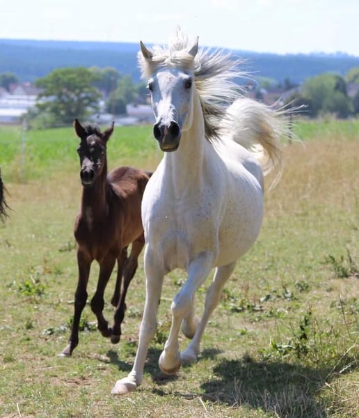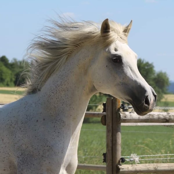 Ghadir wächst bestens sozialisiert in einem Offenstall im kleinen Herdenverband auf, kennt das Jungpferd ABC, wird regelmäßig entwurmt und geimpft. Er ist bald bereit für die nächsten Ausbildungsschriitte in seinem Jungpferdedasein. Sein Großvater ist der rein polnisch gezogene Schimmelhengst Pege Star, der gekört und vom VZAP mit weisser Schleife eingetragen ist und in Marbach seine Hengstleistungsprüfung absolviert hat, sein Vater der vom ZSAA mit Silber ausgezeichnete Rapphengst PA Shai Najim, von dem es ebenfallt wie von Pege Star eine beachtliche Zahl von prämierter Nachzucht gibt, die als wunderbare Reit- oder Freizeitpferde begeistern. Elterntiere können auf Nachfrage besichtigt werden. Aufzuchtplatz kann nach dem Kauf gegen monatliche Gebühr behalten werden. Transport kann entgeltlich übernommen werde (Transportschein für Pferde vorhanden)