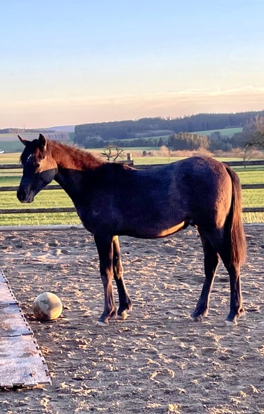 Ghadir is growing up well socialized in an open stable in a small herd, knows the foal ABC, is regularly dewormed and vaccinated. His grandsire is the purely Polish-bred gray stallion Pege Star, his sire the black stallion PA Shai Najim, who has already produced a considerable number of award-winning offspring. Parent animals can be viewed.