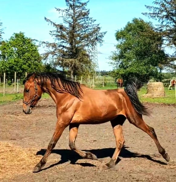 Na sprzedaż piękny ogier pełnej krwi arabskiej, urodzony w 2023 roku. Z elegancką, brązową sierścią i wzrostem 155 cm, jest nie tylko prawdziwą ozdobą, ale także obiecującym kandydatem do sportu ujeżdżeniowego. Ten młody ogier wyróżnia się przyjaznym i otwartym charakterem. Jest dobrze zintegratowany i ma już doświadczenie w kontaktach z ludźmi oraz innymi końmi. Jego ruchy są płynne i wyraziste, co czyni go idealnym partnerem dla ambitnych jeźdźców. Sprawdzi się zarówno w rekreacji, jak i na zawodach, czekając na pełne wykorzystanie swojego potencjału. W razie zainteresowania lub pytań chętnie służymy pomocą. Zapraszamy do odwiedzin i przekonania się na własne oczy o tym wspaniałym koniu!