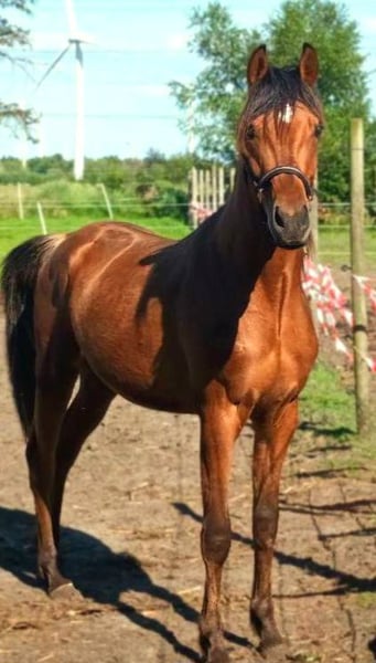 For sale is a beautiful Thoroughbred Arabian gelding, born in 2023. With his elegant brown coat and a height of 155 cm, he is not only a real eye-catcher but also a promising candidate for dressage. This young gelding is characterized by his friendly and open nature. He is well-socialized and has already gained experience in interacting with people and other horses. His movements are smooth and expressive, making him an ideal partner for ambitious riders. He is suitable for both leisure and competitive sports and is waiting to fully realize his potential. If you are interested or have any questions, please feel free to contact us. Visit us and see for yourself this wonderful horse!