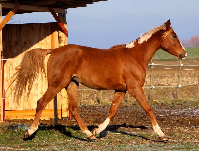 Lexi ist ein sehr anhänglicher, menschenbezogener Anglo Araber Wallach mit über 90% Vollblutaraber Blut. Er hat ein sehr kräftiges Fundament und befindet sich immer noch im Wachstum (aktuell hat er 1,59m). Seine Eltern waren beide erfolgreiche Distanzpferde, dennoch wäre er nicht nur zum Distanz- und Wanderreiten interessant. Aufgrund seines liebenswürdigen Charakters würde er auch einem Freizeitreiter viel Freude bereiten. Er ist kein impulsives Pferd, bei neuen Dingen oder wenn man im Wald querfeldein durch Gräben und über Holzstämme muss, schaut und überlegt er erst mal in Ruhe. Auch das Geböller einer Treibjagd schockt ihn nicht beim Ausritt. Er wurde diesen Spätsommer / Herbst eingeritten. Aktuell macht er nochmal etwas Pause. Er kennt alle Gangarten unter dem Sattel und war auch schon öfters im Gelände. Er ist unkompliziert und lieb im Umgang, kennt Spaziergänge alleine, Duschen, Hufschmied, Verladen und Fahren.... Lexi steht im Elsass in 67440 Reutenbourg. Videos können gerne per Whatsapp versendet werden: 01715362981