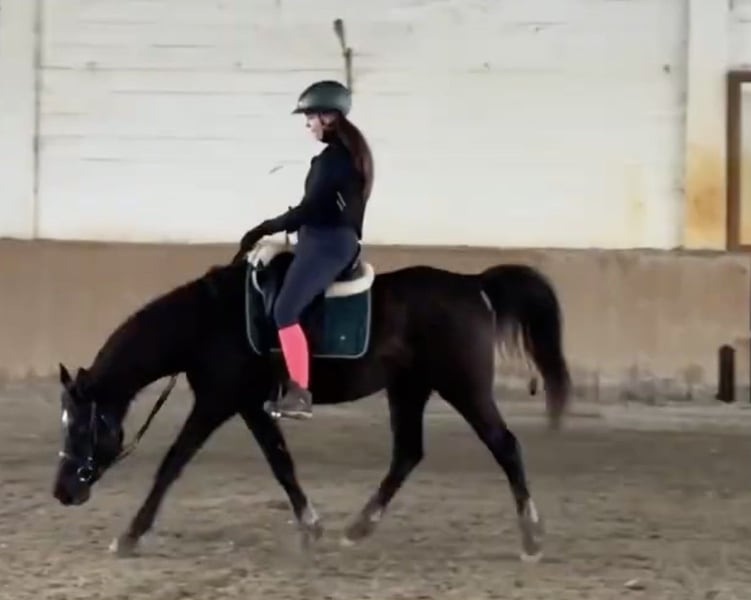 King zu verkaufen – Arabian-Wallach, geboren 2020 King wurde auf einem Zuchtbetrieb geboren und bis zum Alter von fünf Jahren in Herdenhaltung aufgezogen. Er ist sehr robust, völlig gesund, mit sauberen Beinen, starken Hufen und ausgeglichenem Gleichgewicht unter dem Sattel. Sein Training begann im vergangenen Herbst und er ist seitdem regelmäßig gearbeitet worden. • Stockmaß: 150 cm • Sicher und ruhig in allen drei Grundgangarten • Einfach zu verladen, zu pflegen und zu führen • Guter Transportpartner • Ruhiges und ausgeglichenes Temperament • Hat mit dem Stangen- und Springtraining begonnen (das Foto zeigt seinen ersten Sprung) Dank seiner Agilität, Ausdauer und Rittigkeit kann King in verschiedenen Disziplinen erfolgreich eingesetzt werden, z. B. Springreiten, Ausdauerreiten, Reiterarchery und Geschicklichkeitswettbewerbe. Er wird für weibliche Reiter und Junioren empfohlen, aber aufgrund seines ruhigen Wesens ist er auch gut für Kinder oder Reitschulen geeignet. Kein Tausch. 📩 Für weitere Informationen senden Sie uns bitte eine private Nachricht.