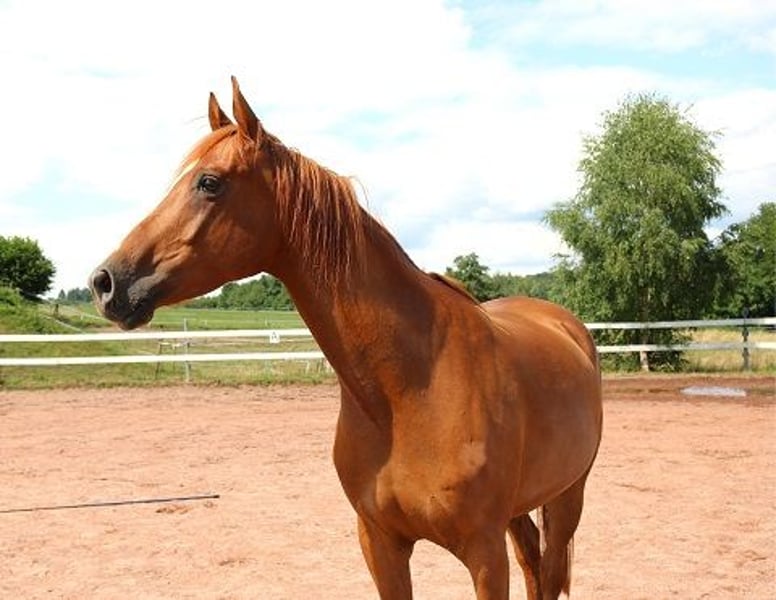 Onaryc ist ein sehr gut gerittener Vollblutaraber. Er wurde erst fünfjährig eingeritten, was ihm nicht geschadet hat. Er ist ein völlig unverbrauchtes Pferd. Der Schwerpunkt wurde anfangs auf die Dressurarbeit gelegt, was sich sehr positiv auf seine Rittigkeit ausgewirkt hat. Er läuft sehr gut an den Hilfen und ist sehr fein zu reiten. Im Gelände hat er auch schon Erfahrungen sammeln können. Er kann problemlos an jeder Position in der Gruppe geritten werden. Da er ein mutiges Pferd ist, läuft er sehr souverän auch ganz vorne als erstes Pferd. Ausritte allein sind überhaupt kein Problem für ihn. Er kennt Straßenverkehr, Kühe und Schafe und geht problemlos durch Wasser. Onaryc ist ein Pferd, das einfach nur laufen will. Er hat riesig Spaß, wenn er sich mit seinem Reiter in Bewegung setzen kann. Durch seine großen Gänge die viel Raumgriff haben, kommt man wirklich gut voran. Seine Gänge sind zudem äußerst bequem zu sitzen. Auf der Weide und im Umgang ist er ein ganz liebes Pferd. Er ist sehr menschenbezogen und kommt einem immer sofort entgegen. In der Herde ist er gut verträglich, er kann auch robust gehalten werden. Sein Körperbau ist korrekt und er hat harte Hufe. Er kennt den Anhänger und den Schmied. Onaryc ist sowohl für entspannte Ausritte, sportliche Wanderritte und auch für Distanzritte geeignet. Ebenfalls macht das Dressurreiten richtig Spaß mit ihm. Onaryc steht im Hunsrück in der Nähe von 56290 Mörsdorf. Er kann jederzeit besichtigt und geritten werden. Kontakt: 01715219230 Nachrichten bitte mit Angabe der Telefonnummer.