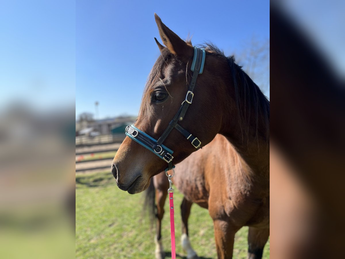 Schweren Herzens geben wir unseren liebevollen Araber Wallach „Maverick“ ab. Er ist 7 Jahre alt und ca. 152 cm groß. Mave ist eher ein schmaler Kandidat, steht gerade auf den Beinen und hat einen schönen Huf. Vor einem Jahr haben wir ihn übernommen und wollten ihn gerne als Nachwuchspferd im Distanzsport ausbilden. Durch die ungeplant eingetretenen gesundheitlichen Umstände unsererseits fehlt leider die Zeit uns intensiv um ihn zu kümmern. Mave hat schon viel in seinem jungen Alter erlebt. Sowohl positives als auch negatives. Derzeit wird er bei uns nur vom Boden aus gearbeitet. Er kennt den Sattel, Gebiss/Trense, Doppellonge, Reitergewicht und auch den Schmied. Die Zähne wurden im Sommer auch gemacht. Im Umgang ist er ein lieber Kerl, er weiß aber auch wie er sich seinen Aufgaben entziehen kann. Weshalb er nur in erfahrene Hände abgegeben wird. Er kommt im Auslauf auch gerne zum kraulen und schmusen vorbei. Mave braucht einen festen Menschen der mit ihm durch dick und dünn geht, der sich die Zeit nimmt die er braucht. Ich freue mich über Anfragen, hinterlasst mir eine Telefonnummer und ich melde mich telefonisch bei dir!