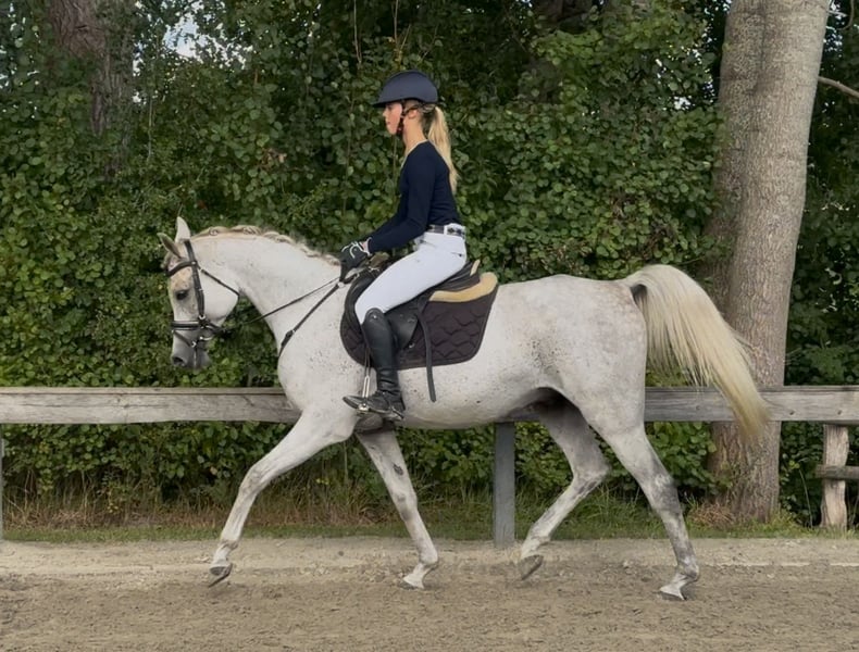 **Sales Advertisement: Thoroughbred Arabian Gelding** For sale is a beautiful Thoroughbred Arabian gelding, born in 2019. This elegant gray stands at 154 cm and impresses with his graceful appearance and friendly demeanor. Our gelding is well-trained and shows great potential in dressage. He has a solid basic training and is well-behaved and reliable both in handling and under saddle. His willingness to learn and pleasant temperament make him an ideal partner for ambitious riders who enjoy dressage. He is well-suited for both trail riding and arena work. Our horse is healthy, regularly vaccinated, and dewormed. If you are looking for a talented and loving partner to accompany you in dressage, then this Thoroughbred Arabian is just right for you! If you are interested or have further questions, please feel free to contact us. We look forward to your message!