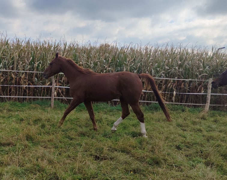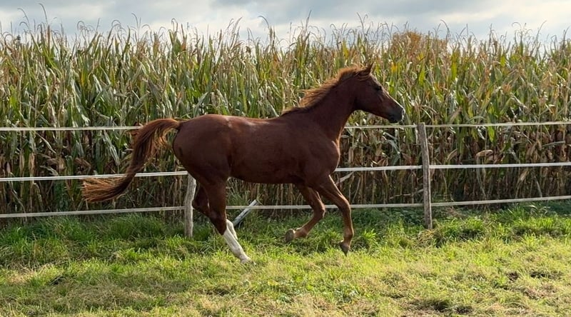 Super beautiful compact, strongly built 6-year-old Thoroughbred Arabian with a height of 1.60m is looking for the best home. He has an extremely strong hindquarters and naturally moves in a nice connection. He is a lot of fun during arena work. He has been used in various disciplines, including a lot of trail riding, three endurance rides, swimming in the lake, gymnastics cavaletti courses, arena work, and lunging in a side reins. He has a calm temperament. He is absolutely traffic-safe, whether trucks, tractors, or a train pass directly by him, it doesn't bother him at all. He loads into the trailer easily and without any issues. He lives in a group with a gelding and a mare, which he really enjoys. He is totally uncomplicated in living with other horses. Since companionship is very important to him, it is my concern that he continues to have this. At the moment, he is barefoot or with glue-on shoes. He is a real ray of sunshine, always up for fun. He will do anything for his treats. He learns new things very quickly, as he is very clever.