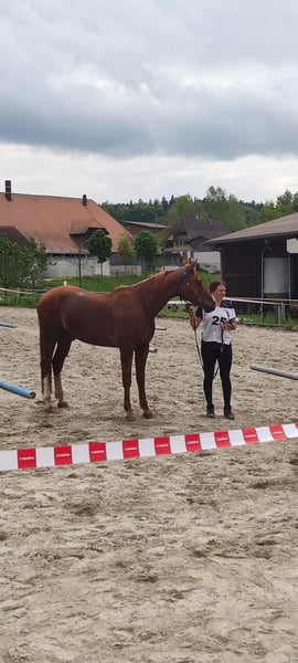 Super schöner kompakt, kräftig gebauter 6 jähriger Vollblutaraber mit einem Stockmass von 1.60 sucht den besten Platz. Er hat eine äusserst starke Hinterhand und läuft von sich aus in einer schönen Anlehnung. Er macht richtig Spass daher bei der Hallenarbeit. Er wurde vielseitig eingesetzt viel in Gelände mit auch drei Distanzritte, schwimmen im See, Gymnastik Cavelletikurs, Hallenarbeit, Longenarbeit am Kappzaum. Er hat ein ruhiges Gemüt. Er ist absolut verkehrssicher, ob Lastwagen, Traktoren oder ein Zug direkt an ihm vorbei fährt, macht ihm nichts. In den Anhänger steigt er gerne problemlos ein. Er lebt in einer Gruppe mit einem Wallach und einer Stute was ihm super gefällt. Er ist total unkompliziert im zusammen leben mit anderen Pferden. Momentan läuft er barhuf oder mit Klebebeschlag. Er ist ein richtiger Sonnenschein, welcher für jeden Spass zu haben ist. Und für seine Leckerlis alles macht. Dabei lernt er sehr schnell Neues, da er sehr clever ist. Aus Zeitmangel in letzter Zeit weniger häufig geritten.