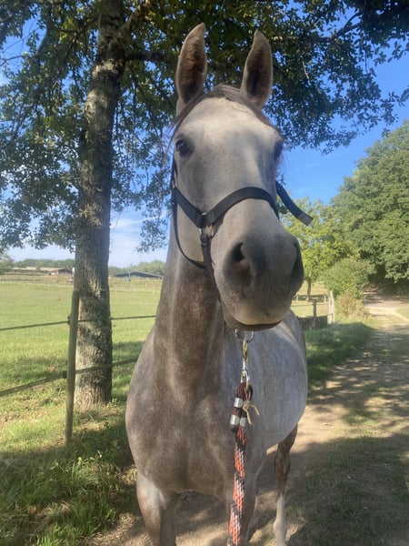 Sto cercando di vendere il mio cavallo grigio di sangue arabo puro. Si chiama Ipop des Aubepines, è un cavallo di 7 anni specializzato in endurance, avendo già completato 60 km. Ha partecipato a numerose competizioni e ne ha vinte molte, dimostrando un ottimo cuore cardiaco. È a suo agio in bosco sia da solo che in gruppo, senza problemi, ed è facile da maneggiare a mano.
