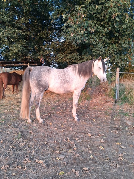 Lieber und verspielter Vollblutaraber Wallach aus Ägyptischen alten Blutlinien zu verkaufen. Er ist stämmig gebaut, läuft barhuf und ist Schmiedefromm. Er lebt mit weiteren Stuten im Offenstall. Hat keine Krankheiten oder Unnarten. Wurde als Handpferd mit ins Gelände genommen. Kennt Reitgewicht und Zaumzeug wurde aber nicht geritten. Er ist E-Zaun sicher und kennt alles an motorisierten Fahrzeugen. Er mag Kinder und kennt Hunde. Leider fehlt mir die nötige Zeit um mit ihm weiter zu arbeiten. Er kann gerne mit Zubehör abgegeben werden. Wird nicht an Anfänger verkauft.