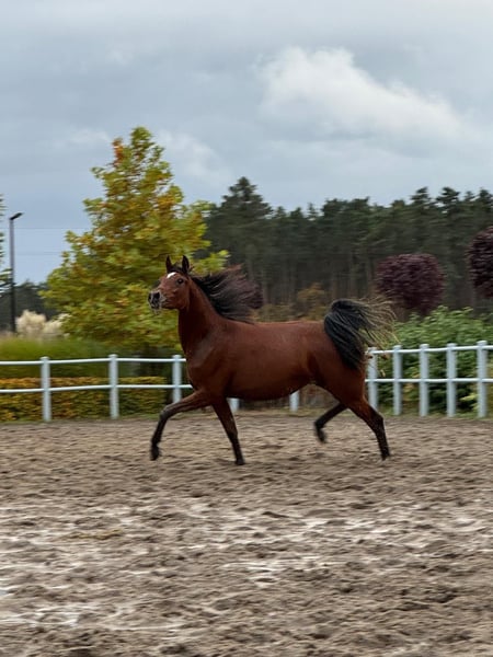 For sale: a beautiful, dark bay Arabian mare with an exotic pedigree D HADDAR (AE) x EKSPULSJA. Born in 2024, she is an elegant-looking mare with a refined appearance. Perfect for breeding, with great potential for reproductive achievements. Ideal for enthusiasts of Arabian horses who value quality and classic elegance. Please contact us for more information!