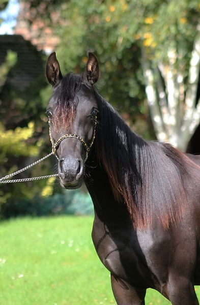 Nice 2 yo filly, black homozygous (DNA tested) looking for a new home. Will be tall, final estimate height ca. 155/6 cm . Correct solid body, straight legs. Interesting pedigree with champions such as Simeon Sadik , Dubai Pasha, Thee Desperado, Wagram, Probat etc. Interesting old polish bloodlines, sire line KUHAILAN AFAS , mixed with best egyptians lines such as Thee Desperado, Bey Shah, Bey El Jamaal.... Diamond Diva is a prospect for breeding but also as a future riding companion for trails or endurance because of her top endurance sire's line ( Wagram****, Palas****, Hadban Enzahi etc. ) She is closed related to 120/160/210 km horses, for example : Ro Shy MOon- recent winner 160 km Dubai and speed record holder. Ro Patagonia 3th in CEN 160 km HH President Cup UAE Halfbrother Jaskier is 2 x winner in 120 km prestige races in UAE. Halfsister Currara 3rd in CEI* 100 km Samorin 2025 His uncle Maestro (halfbrother to sire) was 5th in CEI*** 160 km Castiglione Dl Lago and 13th in CEI*** 210 km Samorin. His aunt Sokolda (full sister of sire ) was 2nd in CEI* 100 Schweich, 3rd in CEI**120 km Fontenbleau . And many many more world top horses !! Registered in Polish Arabian Stud Book, microchipped, DNA tested. Price +8% VAT No VAT for selling outside EU WhatsApp + 48 513 179 245 https://www.black-arabians.com/