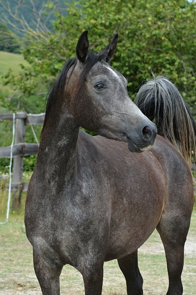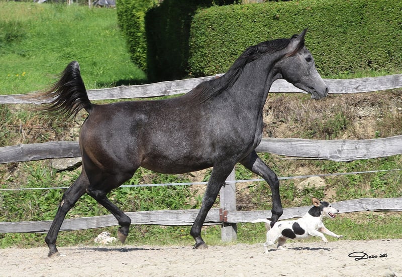 Elewa is a stunning young mare with a lot of quality. She has a very solid foundation, a well-balanced body, beautiful movement, and a remarkable presence. She is highly suitable for future breeding, and also has the potential to become a sporthorse. She comes from one of the best dam lines at the State Stud Michalów. Her sire is Albedo, bred at Janów Podlaski. Her dam is a multiple champion and daughter of the Bronze European Champion. Elewa is healthy and just starting under saddle. She is very well-behaved and learns quickly. In the photos, her mother Eliksja (gray) and her sire Albedo (dark brown) are shown.