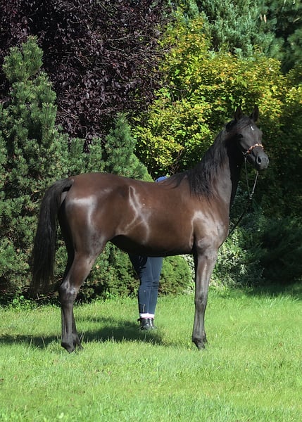 Beautiful 4 yo. mare, black homozygous by parentage looking for a new home. Correct solid body, Super movements. She is very tall, estimate final height 158+ cm ! Nice, exoric face beautiful long neck, Correct legs and hoofs. Interesting pedigree Showy atittude . Registered in PASB. Ready for breeding season. WhatsApp + 48 513 179 245