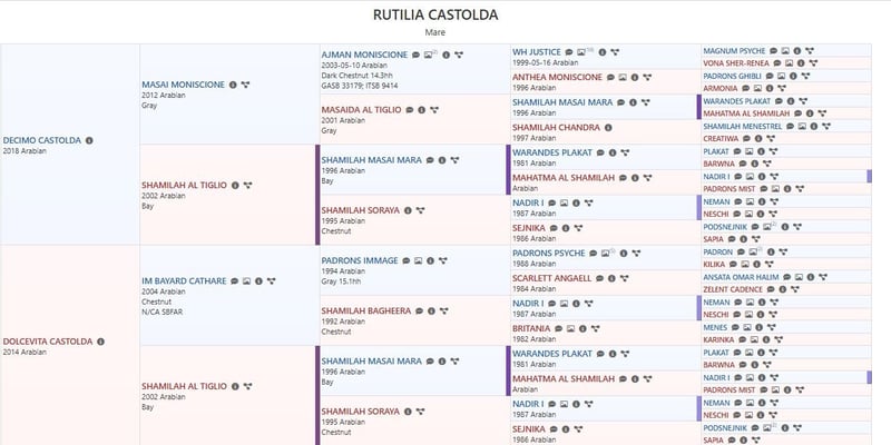 Giovane fattrice purosangue araba, figlia di Dolcevita Castolda (da Shamilah al Tiglio) e Decimo Castolda (da Masai Moniscione). Passaporto ANICA Ottimo carattere e portamento