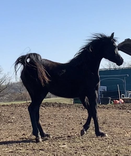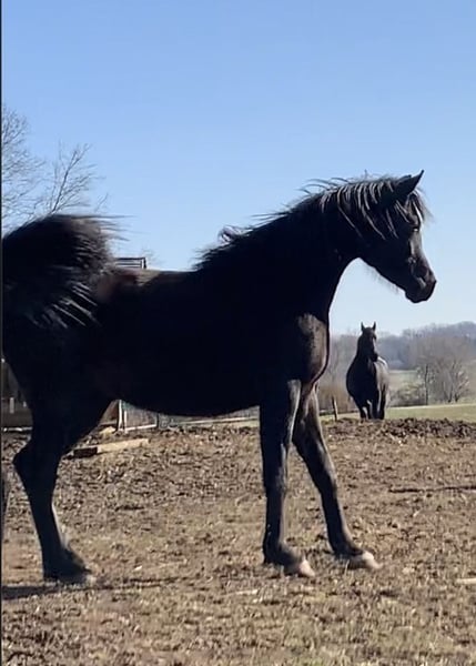 My beautiful Amy is looking for her heart person, someone who has time for her and can show her the world, for whom she can be a friend and partner. Amy is curious, clear-headed, always eager to participate, and wants to do things right. She has just had her first foal at her side, but she is not happy with that; she wants to be important to someone, someone who will explore nature with her and support her. She loads into the trailer without any problems, enjoys going for walks alone and away from the herd, and will soon be prepared for her riding career. Amy was born and raised with me. Her mother and brother are also with me. As a foal, she had an injury on her forehead, which has left a thickening as a scar. This could be surgically removed, but since it would only be a cosmetic procedure, we chose not to do it; it doesn’t bother her, she is our little unicorn. Not everyone has that. She is low in the herd hierarchy, so she should not be in too large groups. She lives 24/7 in a loose housing system with a hay feeder. A place in a loose housing system, movement, and horse companionship are prerequisites. We look forward to friendly inquiries with a brief info about your space, plans, etc. You are welcome to come and take a look and get to know her. If you have any questions, feel free to contact me at 01729919663