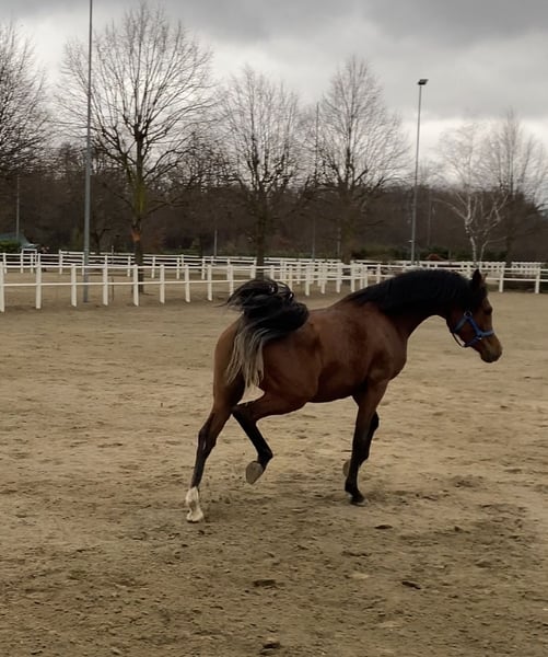Zum Verkauf steht eine tragende Stute, tragend von einem zweifachen italienischen Champion und Bronzemedaillengewinner bei den Europameisterschaften. Die Geburt wird für Februar 2026 erwartet.
