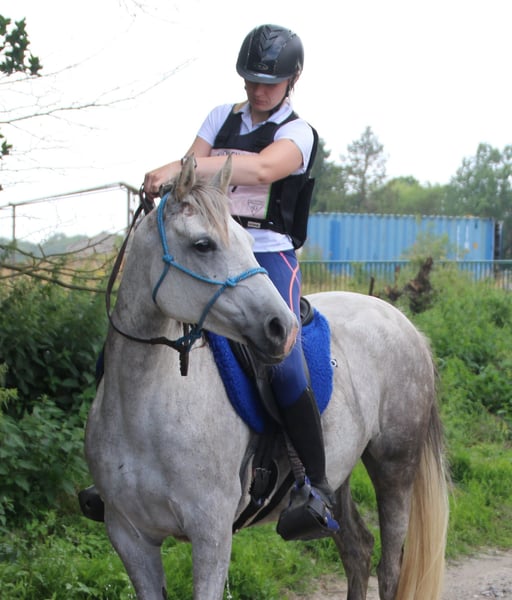 Beautiful mare born in 2017, turning 8 years old. Very attractive and solidly built mare. You wouldn't think she's only 1.50 m tall, but thanks to her sturdy build, even a taller rider looks good on her. She is mainly ridden outdoors, which she loves most. Whether alone or in a group, she remains consistent. She can easily take the lead but is also happy to stay behind. We have completed several long-distance rides, multi-day treks across Belgium (forest, beach, etc.), as well as endurance rides up to 60 km. All of this is done bitless with a rope halter, as she doesn't like much pressure in her mouth. She is easy to steer and control, and has three very pleasant gaits. She manages her energy well and has good stamina for long rides. She has a calm, relaxed demeanor and is not nervous or wild. She exudes a peaceful presence. We believe she is most suitable for trekking and smaller endurance competitions. She also has basic groundwork training / Parelli. During forest rides, we sometimes jump over fallen trees. A gentle, calm mare in handling, easy to transport and to unfamiliar terrain. Quiet in the herd. Stands still nicely when mounting. She also loads easily onto the trailer. We prefer someone with some horsemanship experience; you don't need to be an expert rider. The mare can be veterinary checked; she has had no health issues to date. Up to date with vaccinations. Dewormed multiple times. She is shod all around. The mare has Arabian breed registration (sport, endurance lines), imported from France. She also has good potential for breeding.