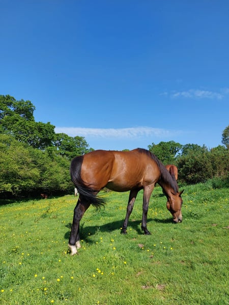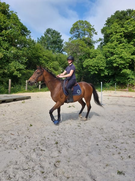 Royal est un cheval pur-sang ayant couru pendant 3 ans en courses de haies. Sociable et agréable lors des soins, il est actuellement au pré et pieds nus. Il nécessitera une remise au travail progressive. Ce cheval n’est pas destiné aux débutants. Idéal pour l’extérieur ou le travail à pied, il n’est pas recommandé pour le travail en carrière ni pour un club.