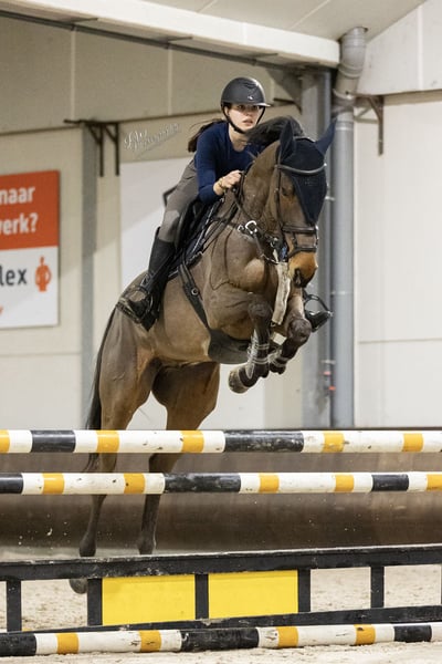 For sale: Due to personal circumstances, I am heartbroken to sell my lovely gelding with potential for show jumping. Epsilon indi v. Ask is an Irish Thoroughbred. Sire: ASK Dam: Coco Moon Dam's sire: Classic Cliche Eppie is a 12-year-old gelding (born 23-05-2013) with a height of 1.63 m (16.1 hh). He has competed at B-level in jumping (+3) and in dressage (+2). He is a sensitive horse, requiring an experienced, confident rider who enjoys a challenge. He rides well on unfamiliar terrain, though he may be a bit tense during the first steps. This usually passes after some warm-up. He handles the course very well. He remains calm during jumping, stays composed, and is willing to jump. He can become excited before the jump during training and needs guidance in this area. He shows a nice jump. At home, we trained him at 1.10 m level, which he handled calmly. He also enjoys hacking out, but can sometimes become a bit tense. Once in the woods, he is good. He is impatient at the blacksmith; I am happy to share more details honestly with serious interest. He is shod with special shoes due to thin soles. He confidently loads onto the trailer with calm, proper guidance—no rushing needed. If another horse is already loaded, he will walk on easily. He needs daily turnout where he can move freely. He is social within a group but may not click well with other geldings if they display stallion-like behavior or are overly cheeky. He is well-behaved and calm with mares. In handling, he can be enthusiastic, so he needs someone to correct him when necessary, such as when being turned out. He is gentle on the ground and in his stable. Under stress, he tends to inhale air. He doesn’t grab anything, just breathes in the air, so it’s important he gets plenty of turnout. I am selling Eppie with a heavy heart, but unfortunately, I no longer have the time to give him what he truly deserves. He will only go to a 5-star home. Dealers need not respond! His equipment, including saddle (excluding girth), bridle (excluding bit), and breastplate, will also be included. Please contact me if you are seriously interested.