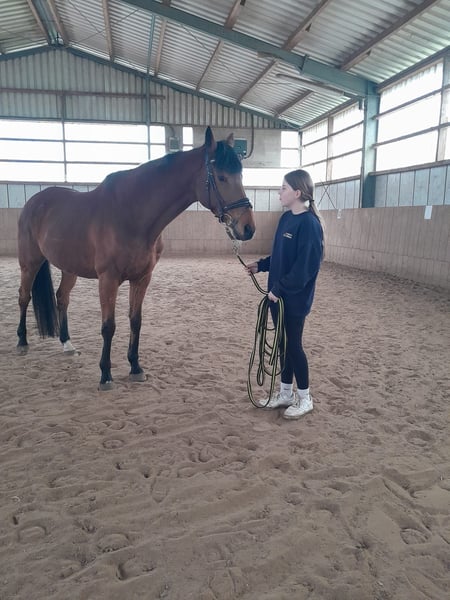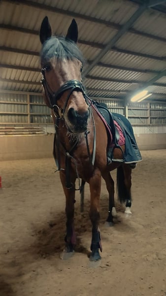 Bedingt reitbarer irisches Vollblut Wallach (14 Jahre, ca. 168 cm) als Beisteller zu verkaufen. Kein Rennen gelaufen. Nur Freizeitmässig geritten Zum Verkauf steht ein 14-jähriger Vollblut Wallach mit einem Stockmaß von ca. 168 cm. Er ist aufgrund von Rückenproblemen ( Kissing Spines) nur noch bedingt reitbar, aktuell jedoch im Schritt reitbar. Daher wird er in erster Linie als Beistellpferd abgegeben. Im Umgang zeigt er sich brav / lieb / menschenbezogen, kennt [Offenstall/Box/Weide] und ist gut verträglich mit anderen Pferden. Wir wünschen uns für ihn ein liebevolles und verantwortungsbewusstes Zuhause, in dem er als Gesellschaftspferd seinen Lebensabend genießen darf. Weitere Informationen gerne auf Anfrage. Besichtigung nach Absprache möglich. Preis: 1400 Standort: Kreis Warendorf