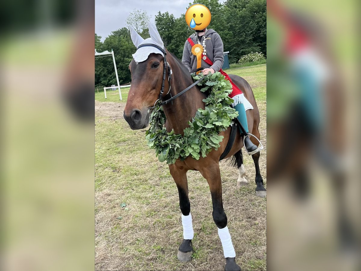 Schweren Herzens müssen wir uns von einem der coolsten Pferde trennen, dass man sich für sein Kind wünschen kann. Unser Schnorchel ist ein irischer Traber, geboren Mai 2009. Er wurde stets entwurmt, geimpft und auch der Hufschmied war alle paar Wochen zur Bearbeitung bei uns. Schnorchel ist ein Nervenstarkes Kleinpferd mit 152cm Stockmaß. Wie die meisten Traber kann auch er tölten. Dies ist aber bei uns nie gefördert worden. Und ja, er galoppiert auch. Er geht sehr gerne ins Gelände (auch alleine)und hat sich dabei stets als verlässliches, nervenstarkes und ruhiges Pferd gezeigt das sich durch kaum etwas aus der Ruhe bringen lässt. Im Umgang mit Kindern und anderen Tieren zeigt er sich stets ruhig und umsichtig. Selbst bei der Fütterung bleibt er ruhig uns geduldig. Kein schubsen, abdrängen oder beißen. Es gab bisher auch noch kein Pferd mit dem er nicht gut Freund war. Ich würde ihn auch ganz klar als Rangniedrig einschätzen. Er liebt es mit Kindern spazieren zu gehen. Geht alleine ins Gelände Schorchel hat ein allergisches Asthma. Er ist nun seit 4 Jahren in unserem Besitz, von denen 2 Jahre ohne Medikation komplett beschwerdefrei verliefen. Seit einiger Zeit ist er mit ca. 25 € Therapiekosten im Monat beschwerdefrei. Damit das auch so bleibt würden wir uns freuen wenn er einen Platz nahe der See bekommt. Unsere Tochter hat angefangen ihn zu reiten als sie gerade einmal 7 Jahre alt war. Nun ist sie 11 und hat an Pferden das Interesse fast vollständig verloren. Da der Gute viel zu schade ist um ihn weiterhin nur auf die Wiese zu stellen, haben wir uns nun dazu entschieden ihn in Hände zu geben die ihn wieder fördern und fordern. Das hier ist also KEIN Notverkauf!!! Da wir uns ja nun das Hobby Pferd komplett aufgeben,kommt er auf jeden Fall mit seinem Sattel, Trense und etwas Zubehör. Ich habe versucht ihn so gut wie möglich zu beschreiben. Bei Fragen gerne melden, telefonieren oder besichtig Standort 25… 1500 € VHB (Platz vor Preis)