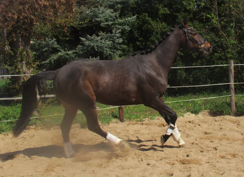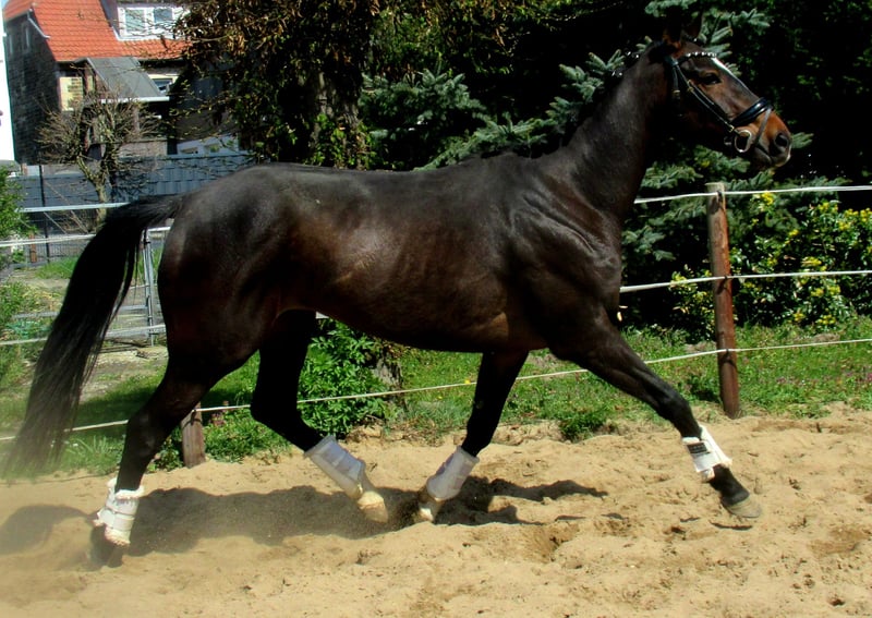 Liebe Dunkelbraune, artig im Umgang, schmiede- und verladefromm, longiert, gesund, schöne Bewegungen, volle Abstammung, ein Pferd im handlichen Format, zur weiteren Ausbildung oder zur Zucht